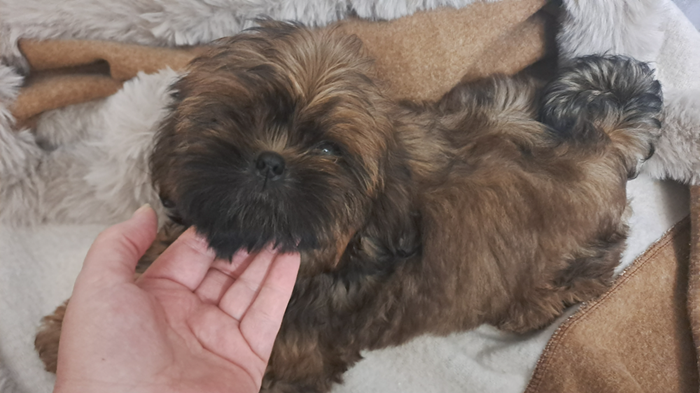 Bébé 5 Femelle dorée masque noir (quelques poils blancs au poitrail) "A-Vanille " de l'empreinte sacrée du Tibet (la plus petite des 2 femelles dorées) (VENDU) Prix 1200 euros (paiement en plusieurs fois possible, mais je demande un accompte de 300 euros à la réservation) Il sera disponible à partir de 8 semaines, inscrit au LOF, vaccinée, pucée, avec le certificat de bonne santé du vétérinaire, les parents sont testés ADN. tel 03 20 20 03 65 ou vous pouvez me contacter par mail : à rmaud2@aol.com (à 5 jours) (à 1 semaine) ( à 2 semaines) (à 3 semaines) (à 1 mois) Le 12 janvier 2026